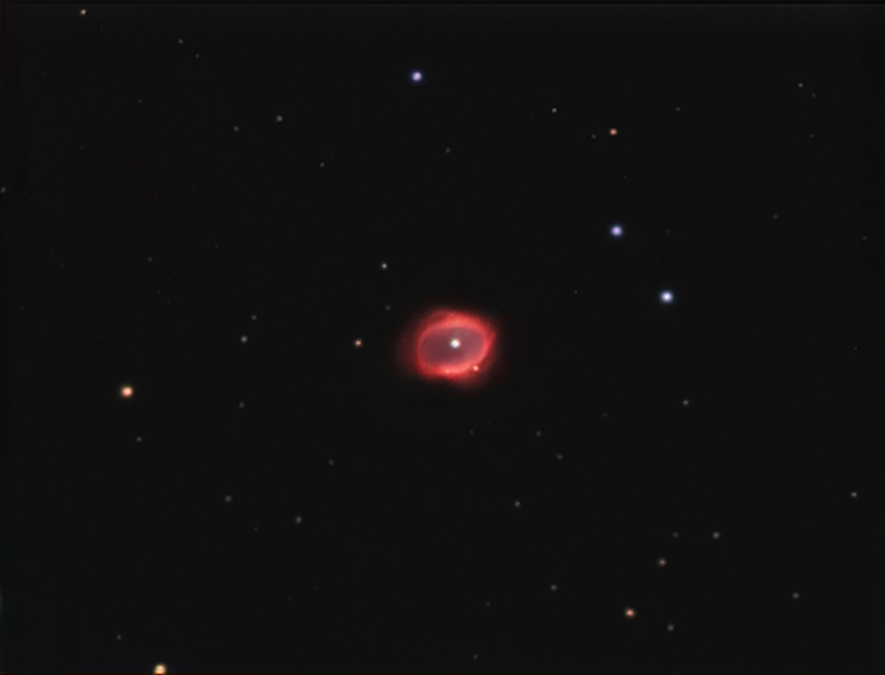 A nice planetary nebula also known as the Southern Ring Nebula. The Nebula contains two central stars. The one visible in the image of Magnitude 10 and a dimmer one of magnitude 16 which was not defined in the photograph. The fainter star is considered the central star that has exploded with multiple star burst (in fact that's the reason of its name) and formed the nebula. This is my first picture at f10. I did not wait for a good night as it is recommended to do when working with 2 meters of focal length. The night it was just average and somehow I lost the darks frames, so the process was a bit hard. The LHa Picture below shows some artifacts in this respect