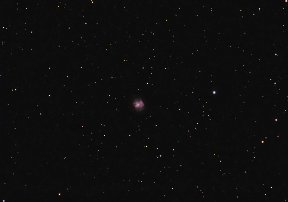The nebula is located in Scorpius near the limit with Constellation of Lupus. Not much information on this object over the net, however it is highly recommended for imaging. In my opinion it has some similarity with M76, although M76 is more that twice its size. It can be seen with large telescopes. Some reports stated the bluish component is almost visible. The object was going down west and September is too late for a picture from my location, nevertheless i am pleased with the result.