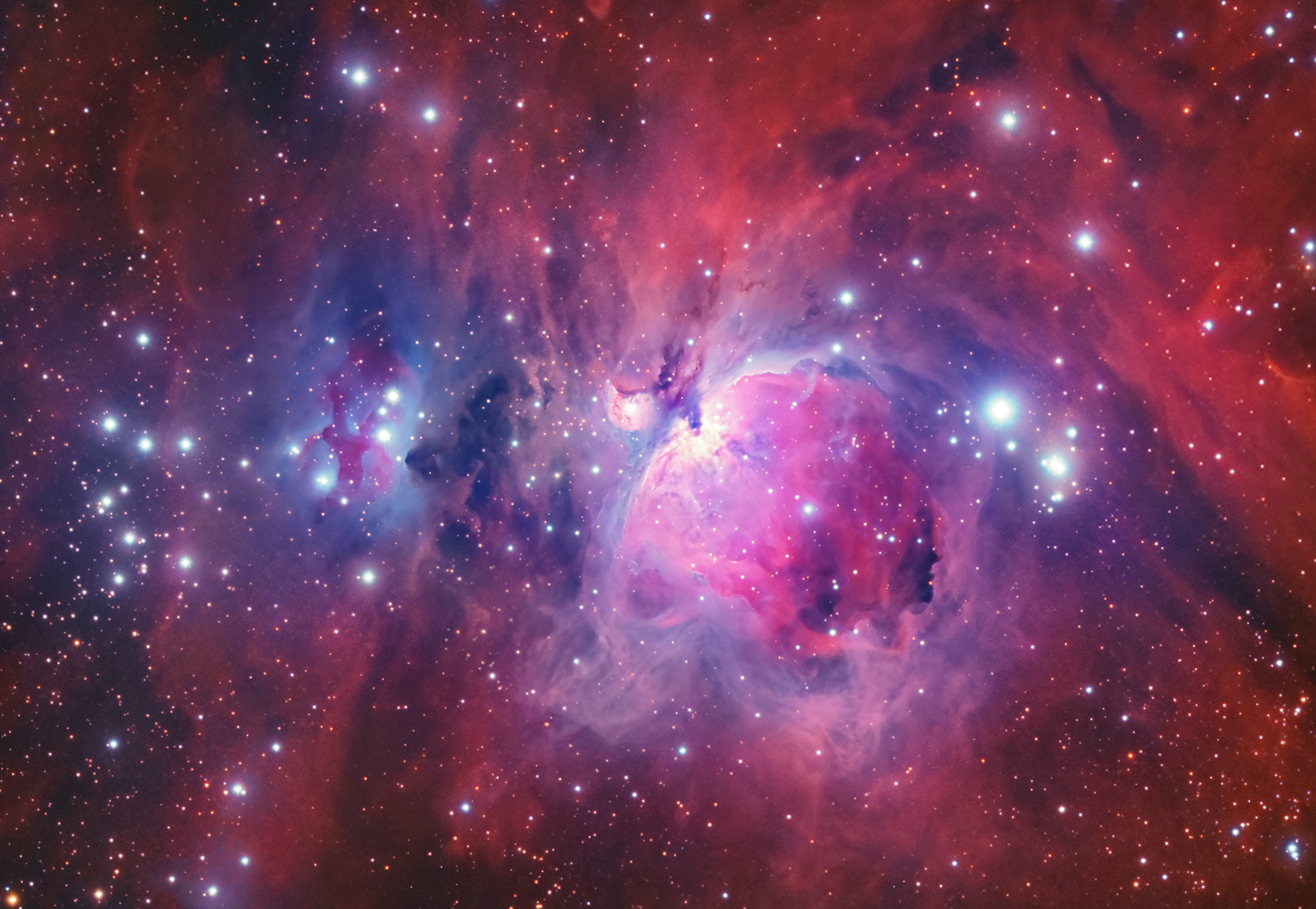 Visible at naked eye and in both Hemispheres, this is probably one of the most photogenic regions of the night sky. The complex shows a variety of components; starting from magnitude 4.2 open cluster NGC 1981; the bluish emission region contains NGC 1973, 1975 and 1977; finally the Orion nebula gathers M43, M42 and NGC 1980.